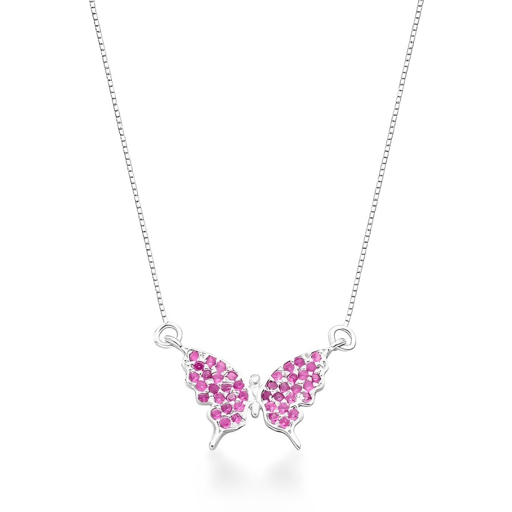 O Colar Cravejado Borboleta Rosa é uma joia delicada e encantadora que traz a leveza e a elegância de uma borboleta em seu design. Feita em prata 925, essa gargantilha apresenta um pingente de borboleta cravejado com pedras rosa, adicionando um toque de cor e brilho. Perfeita para quem deseja um acessório feminino e sofisticado, que transmite liberdade e beleza.