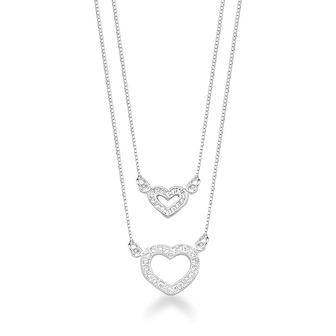O Colar Duplo com Corações Cravejados é uma peça sofisticada e romântica, ideal para quem deseja um acessório que combine brilho e significado. Produzida em prata 925 de alta qualidade, esta gargantilha apresenta duas correntes delicadas, com pingentes de corações cravejados com zircônias, criando um visual elegante e encantador. Perfeita para expressar amor e carinho de forma única e brilhante.
