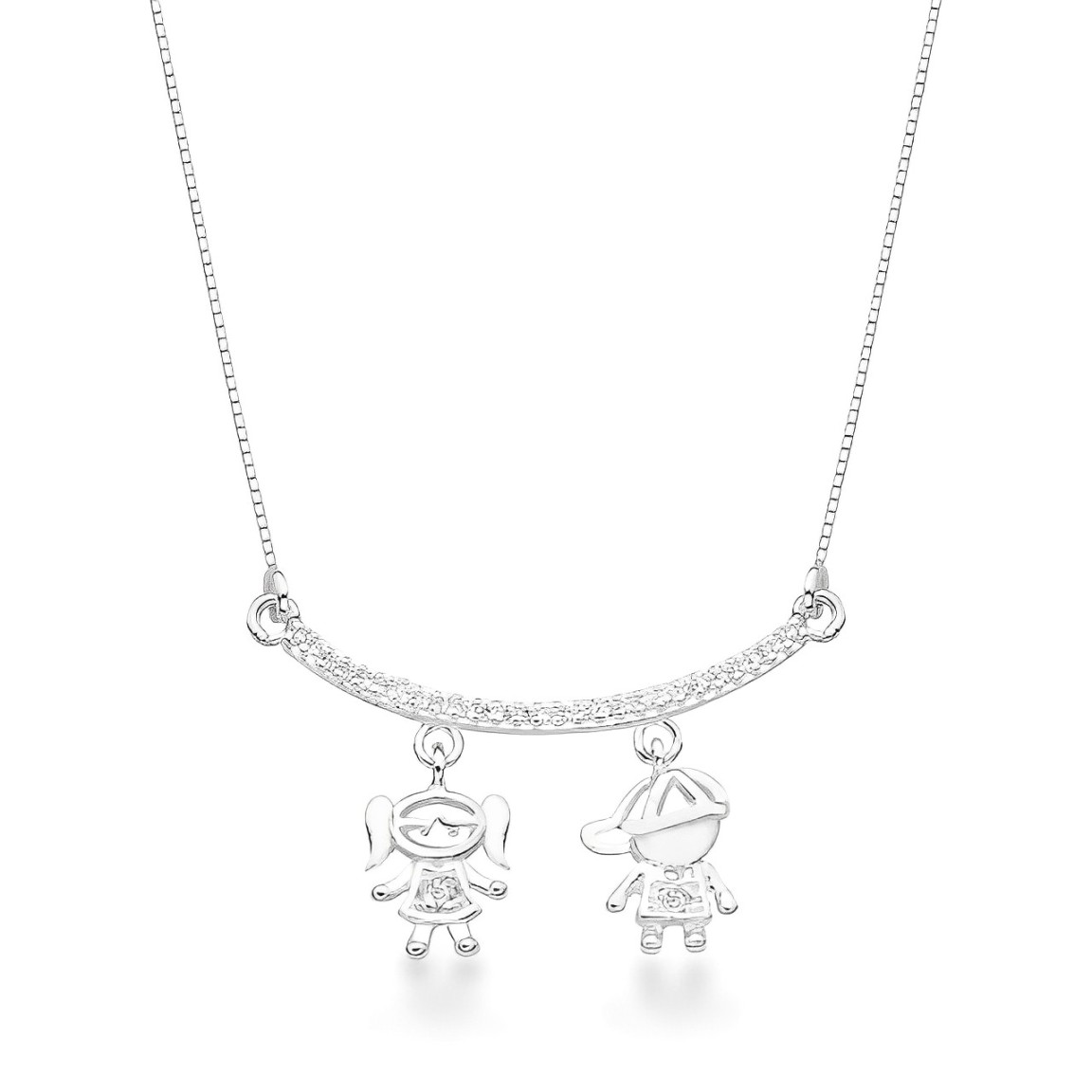 Colar Laço de Família Prata 925 - Menino e Menina