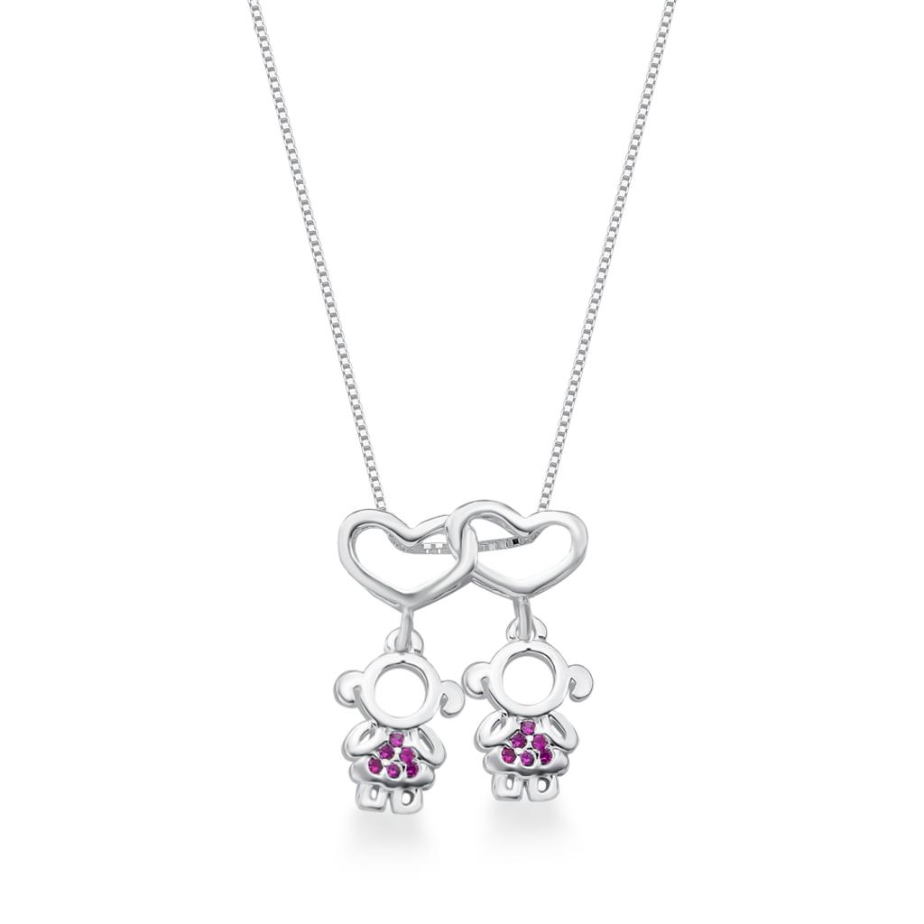 Feito em prata 925 legítima, com duas delicadas menininhas esmaltadas em tom rosa, essa peça carrega afeto, significado e beleza em cada detalhe.