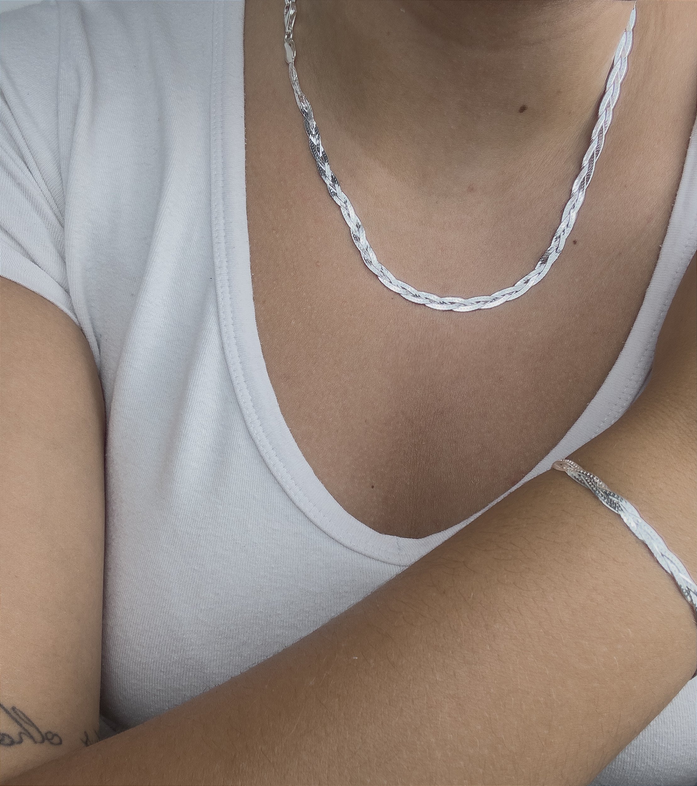 O Conjunto Três Fios de Força une colar e pulseira em prata 925 com acabamento torcido, que transmite movimento, união e sofisticação atemporal.